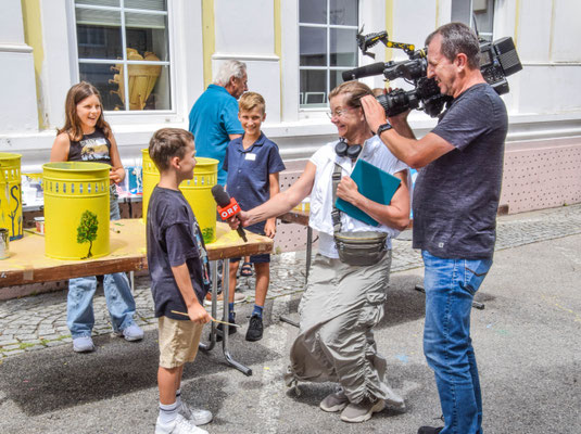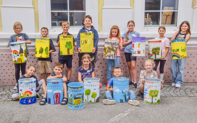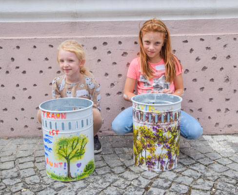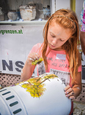 Aktion zu 50 Jahr Stadt Traun, von Kunst ohne Grenzen mit 2 Klassen der Neuen Mittelschule Traun
