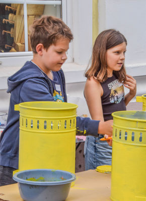 Workshop in Steyrling, mit Schüler der dortigen Volksschule, am 13.März 2024 – Marmorieren von Papier, Kerzen und Fliesen
