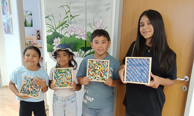 Workshop in Steyrling, mit Schüler der dortigen Volksschule, am 13.März 2024 – Marmorieren von Papier, Kerzen und Fliesen